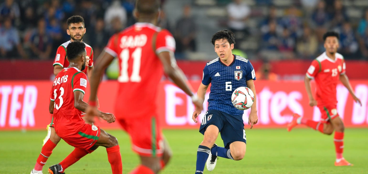 Đội tuyển Nhật Bản (áo xanh) thắng chật vật Oman 1-0 nhờ quả phạt đền được cho là may mắn. Ảnh: AFC