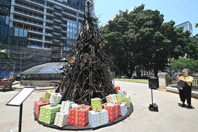 "Cây thông Giáng sinh bị thiêu cháy" được trưng bày tại khu trung tâm thương mại ở Sydney như một biểu tượng cho những người dân mất nhà cửa và sinh kế sau vụ cháy rừng. Đây là một phần chiến dịch gây quỹ do Hội Chữ thập Đỏ Australia tổ chức, theo Washington Post.