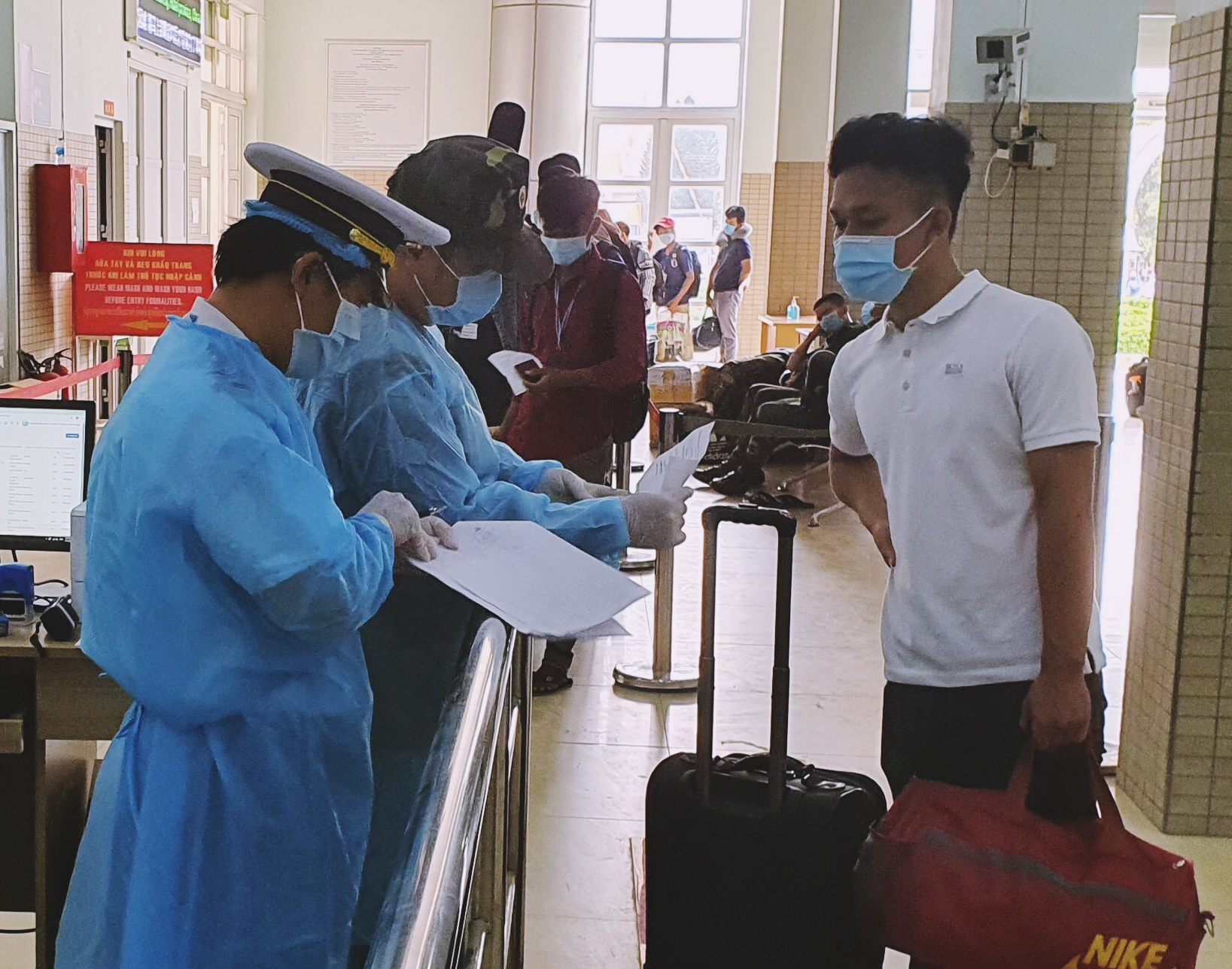 Công dân làm thủ tục nhập cảnh về nước tại Cửa khẩu quốc tế Mộc Bài