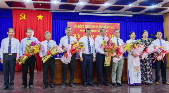 Bầu ông Võ Thành Công- Trưởng Ban Tuyên giáo đồng thời là Giám đốc Trung tâm bồi dưỡng chính trị huyện giữ chức Trưởng Ban Kinh tế-xã hội HĐND huyện; bầu bà Nguyễn Thị Phượng-Trưởng Phòng Kinh tế-Hạ tầng giữ chức Phó Chủ tịch UBND huyện Tân Châu, nhiệm kỳ 2021-2026.