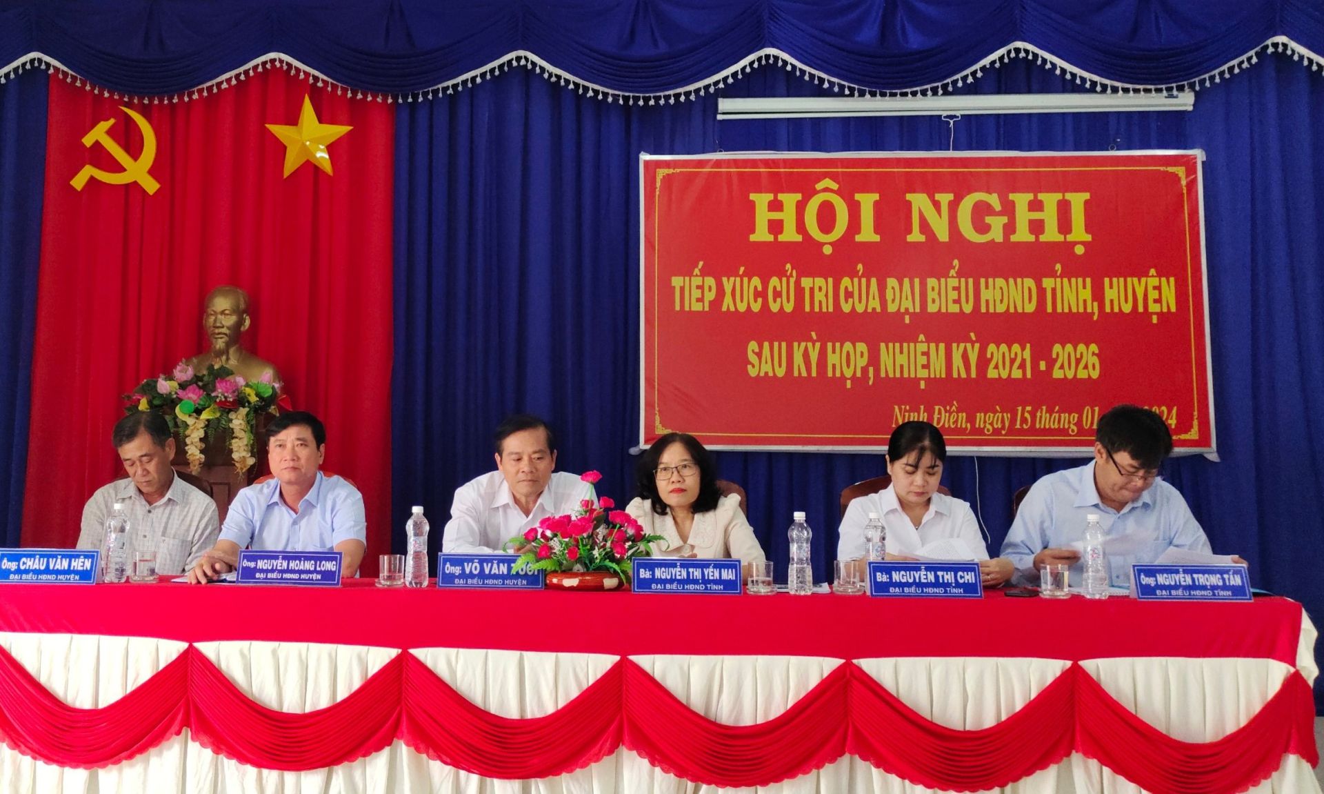 Ngày 15.1, tại xã Ninh Điền, bà Nguyễn Thị Yến Mai- Trưởng Ban Tổ chức Tỉnh uỷ, Trưởng Ban Kinh tế - Ngân sách HĐND tỉnh cùng tổ đại biểu HĐND tỉnh, huyện tiếp xúc cử tri hai xã: Long Vĩnh và Ninh Điền sau kỳ họp thứ 10 HĐND tỉnh và kỳ họp thứ 7 HĐND huyện.