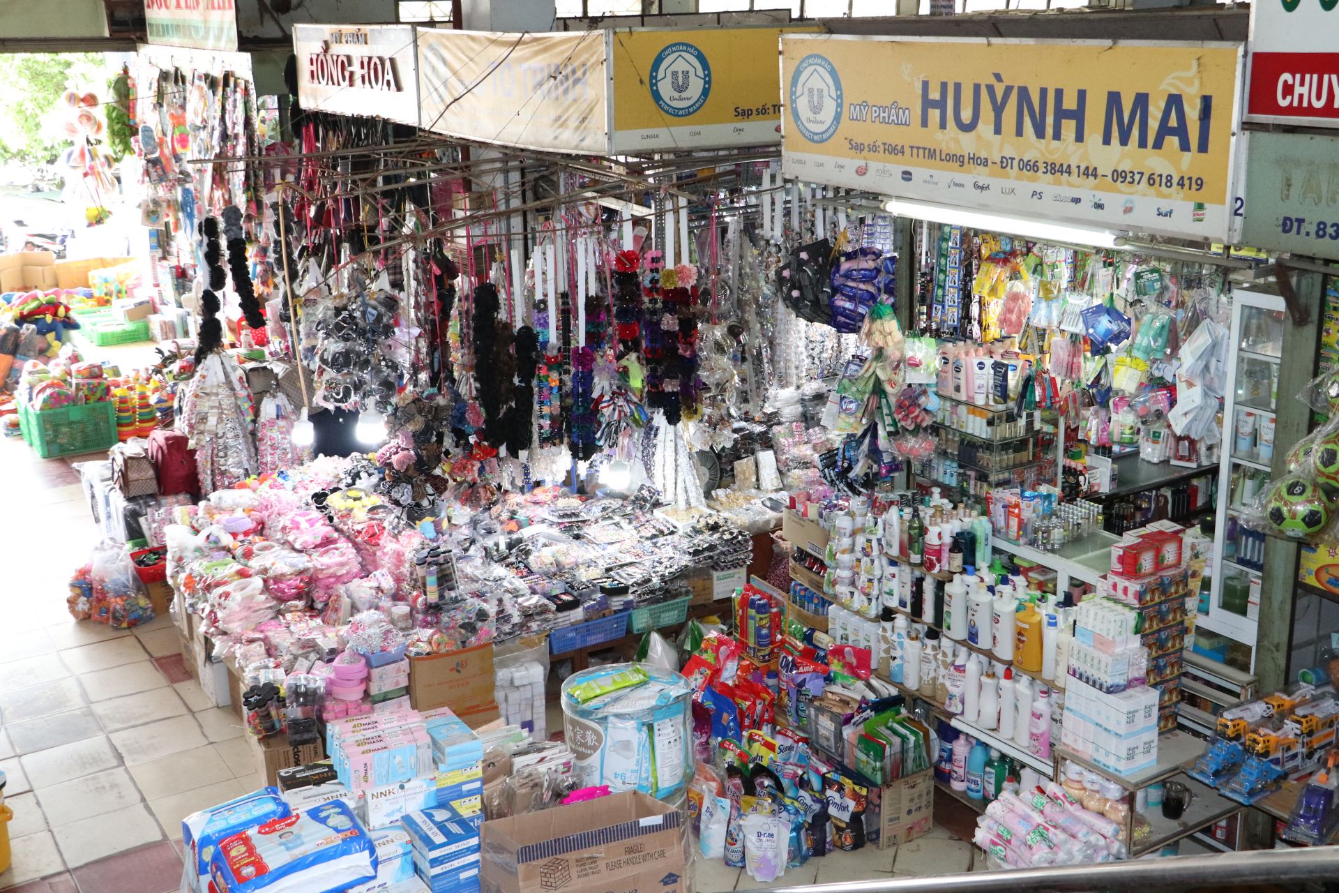 Một số gian hàng trong Trung tâm thương mại Long Hoa.