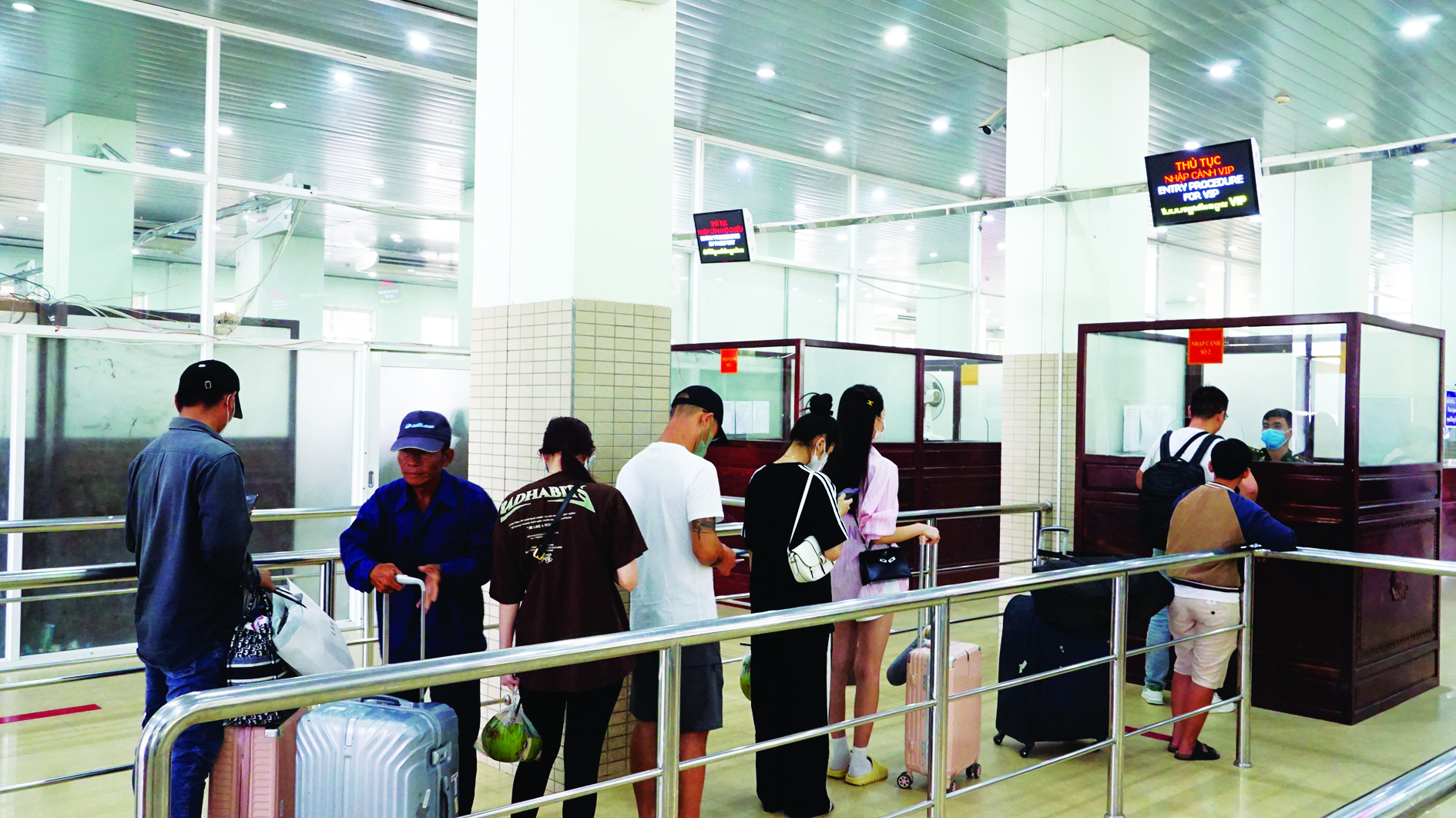 Hành khách làm thủ tục nhập cảnh tại Cửa khẩu quốc tế Mộc Bài.