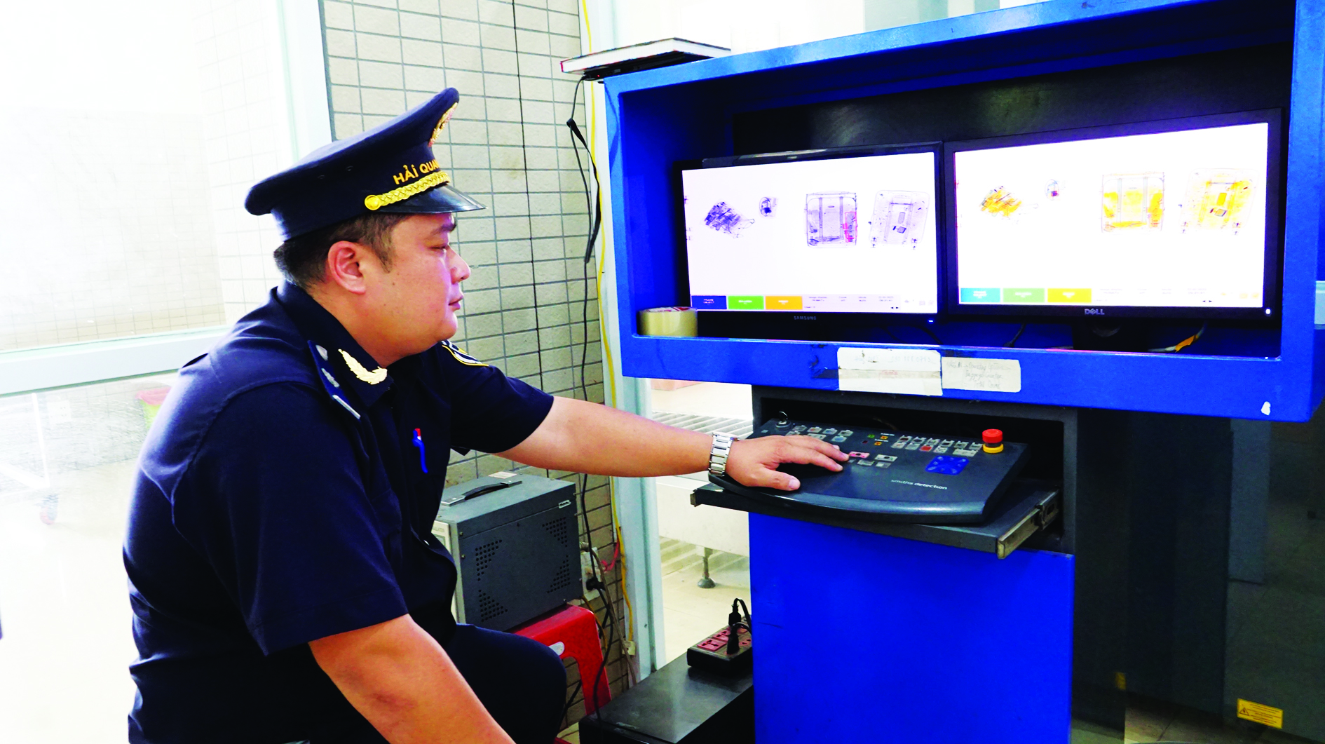 Lực lượng Chi cục Hải quan cửa khẩu Mộc Bài thực hiện công tác soi hàng hoá của hành khách xuất nhập cảnh.