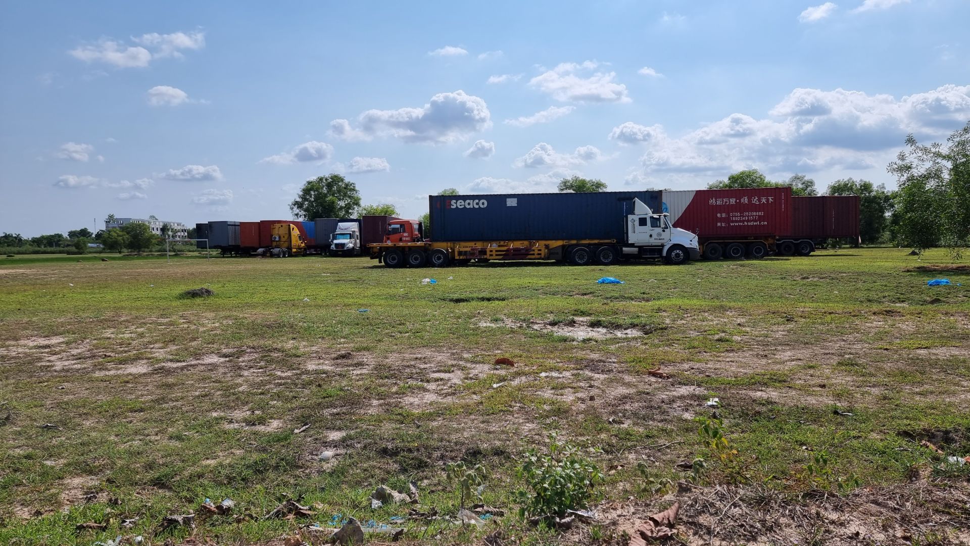 Xe kéo container đậu ở một bãi đất trống gần cửa khẩu Mộc Bài.