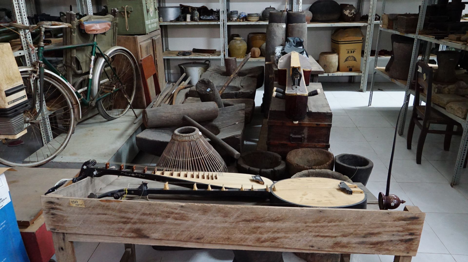 Hiện vật trong kho được kiểm tra, bảo quản và theo dõi chặt chẽ, chống mối mọt toàn bộ diện tích nhà kho và nhà trưng bày để bảo quản.