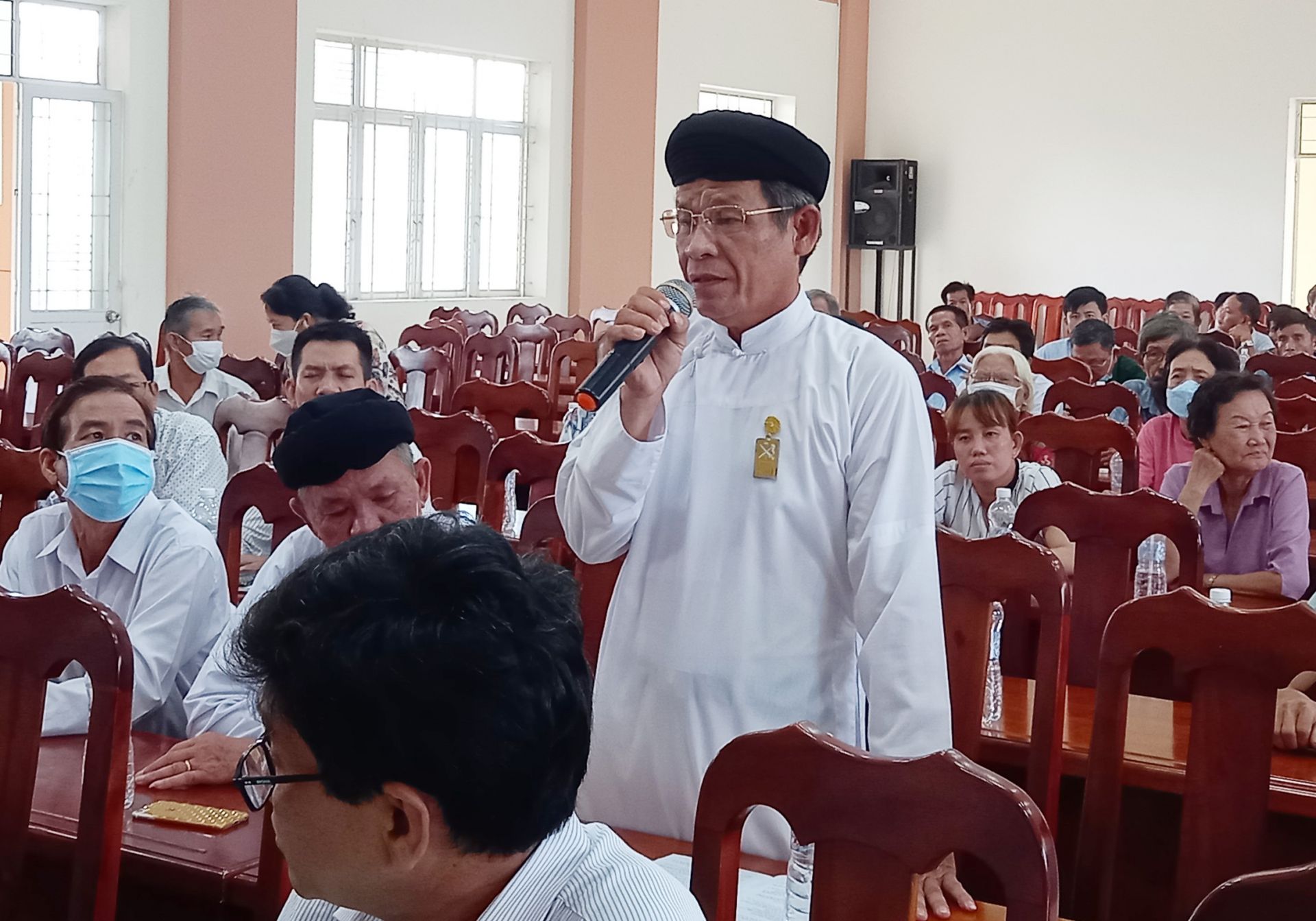 Cử tri tôn giáo Cao Đài phát biểu ý kiến tại hội nghị tiếp xúc cử tri với đại biểu Quốc hội.