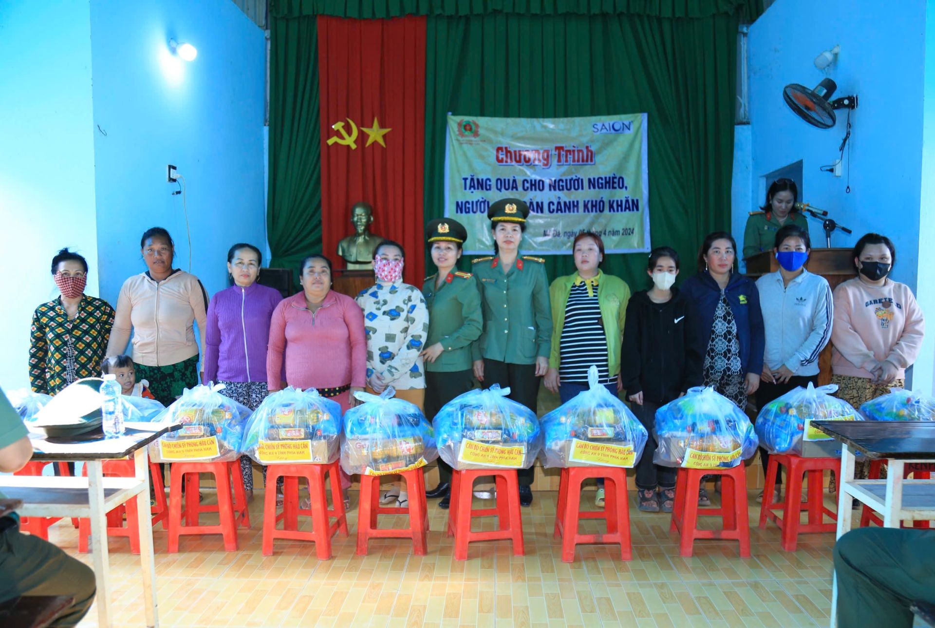 Cán bộ, chiến sĩ tặng quà cho người nghèo, người có hoàn cảnh khó khăn.