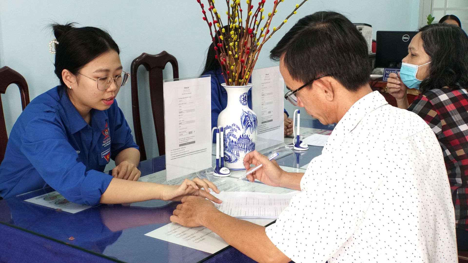 Cán bộ hội, đoàn thể cấp xã trên địa bàn tỉnh hỗ trợ người dân nộp thủ tục hành chính trực tuyến.