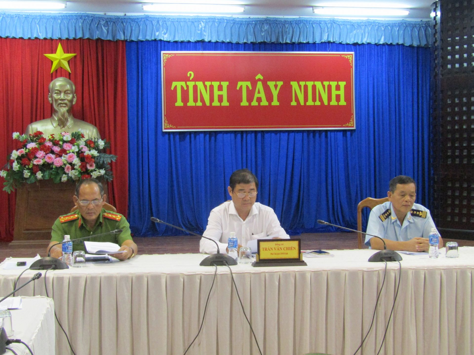 Tại điểm cầu tỉnh Tây Ninh, Phó Chủ tịch UBND tỉnh Trần Văn Chiến, thành viên BCĐ 138 và 389 tỉnh Tây Ninh tham dự hội nghị.
