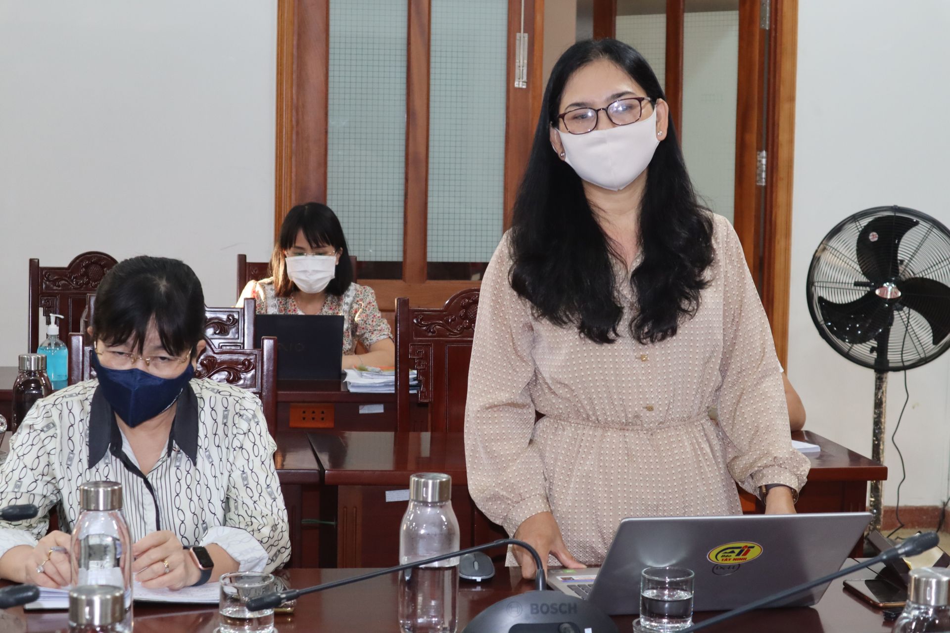 Bà Trần Thị Mỹ Linh – Tổng Biên tập Báo Tây Ninh phát biểu ý kiến tại cuộc họp.