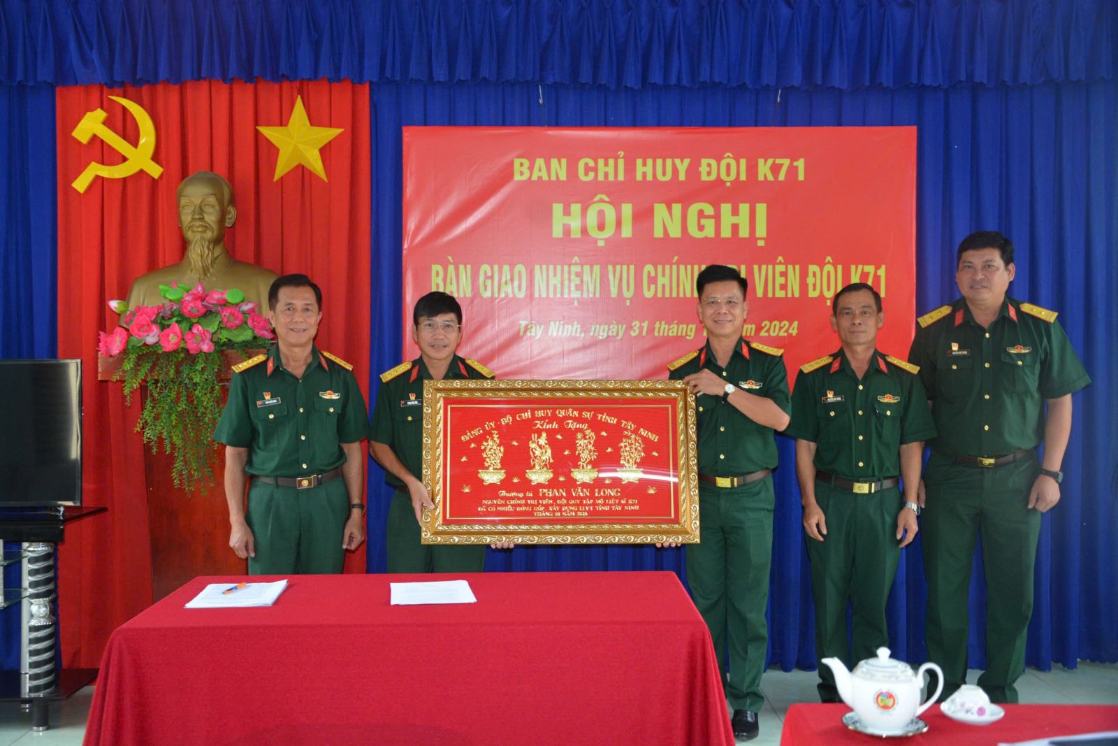 Chiều 31.12, Ban Chỉ huy Đội K71, Bộ Chỉ huy Quân sự (CHQS) tỉnh tổ chức hội nghị bàn giao nhiệm vụ Chính trị viên, Bí thư Chi bộ Đội K71. Đại tá Nguyễn Thanh Phong– Chính uỷ Bộ CHQS tỉnh chủ trì hội nghị.
