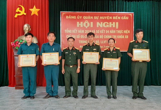Dịp này, Ban CHQS huyện Bến Cầu đã trao giấy khen cho 2 tập thể và 3 cá nhân đã có thành tích trong việc học tập và làm theo tư tưởng, đạo đức, phong cách Hồ Chí Minh.