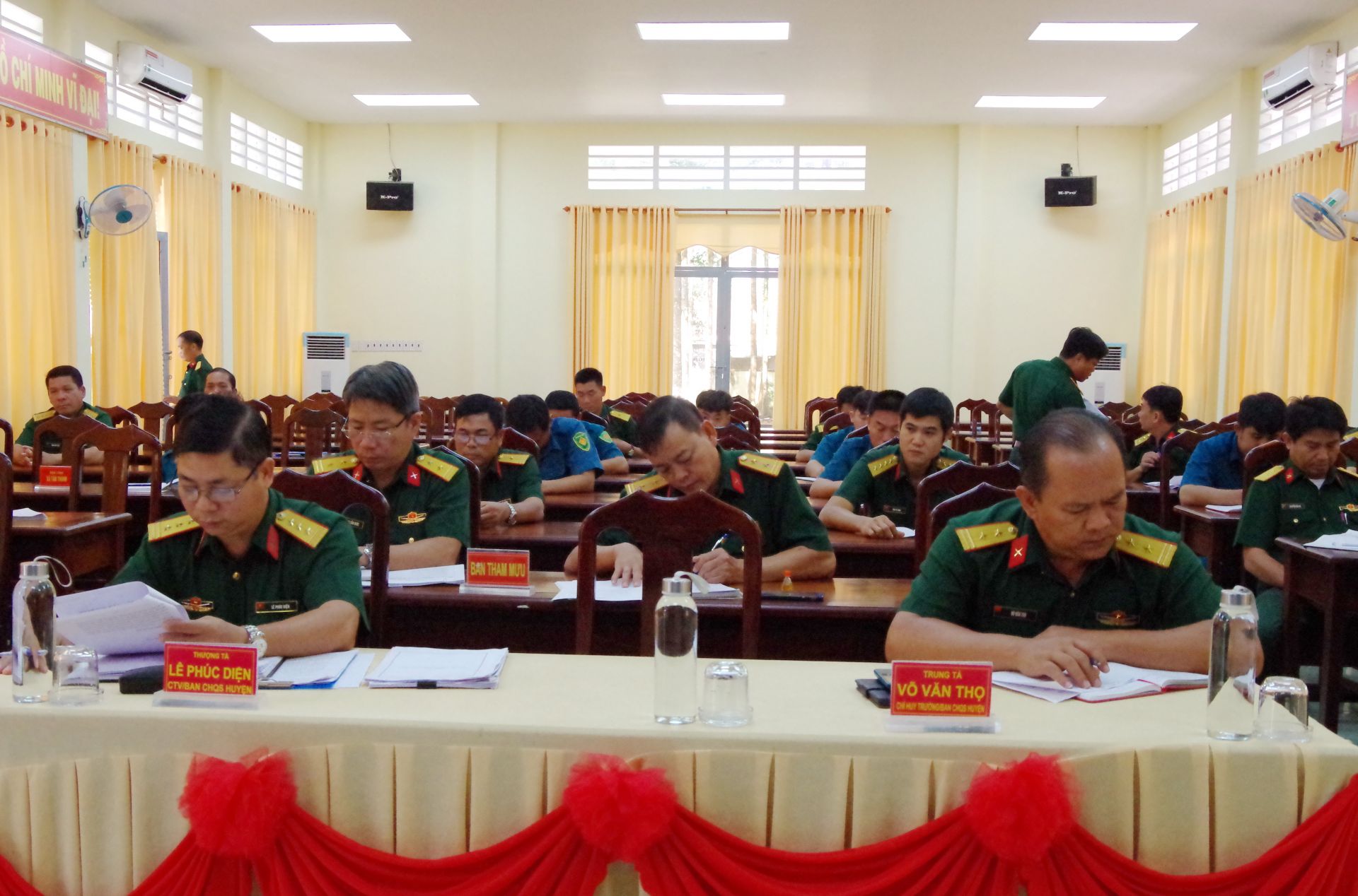 Dự và chủ trì có Thượng tá Lê Phúc Diện- Phó Bí thư Đảng ủy Quân sự, Chính trị viên Ban CHQS huyện; Trung tá Võ Văn Thọ- Chỉ huy trưởng Ban CHQS huyện; cán bộ sĩ quan, quân nhân chuyên nghiệp thuộc Ban CHQS huyện và Chỉ huy trưởng Ban CHQS 12 xã, thị trấn.