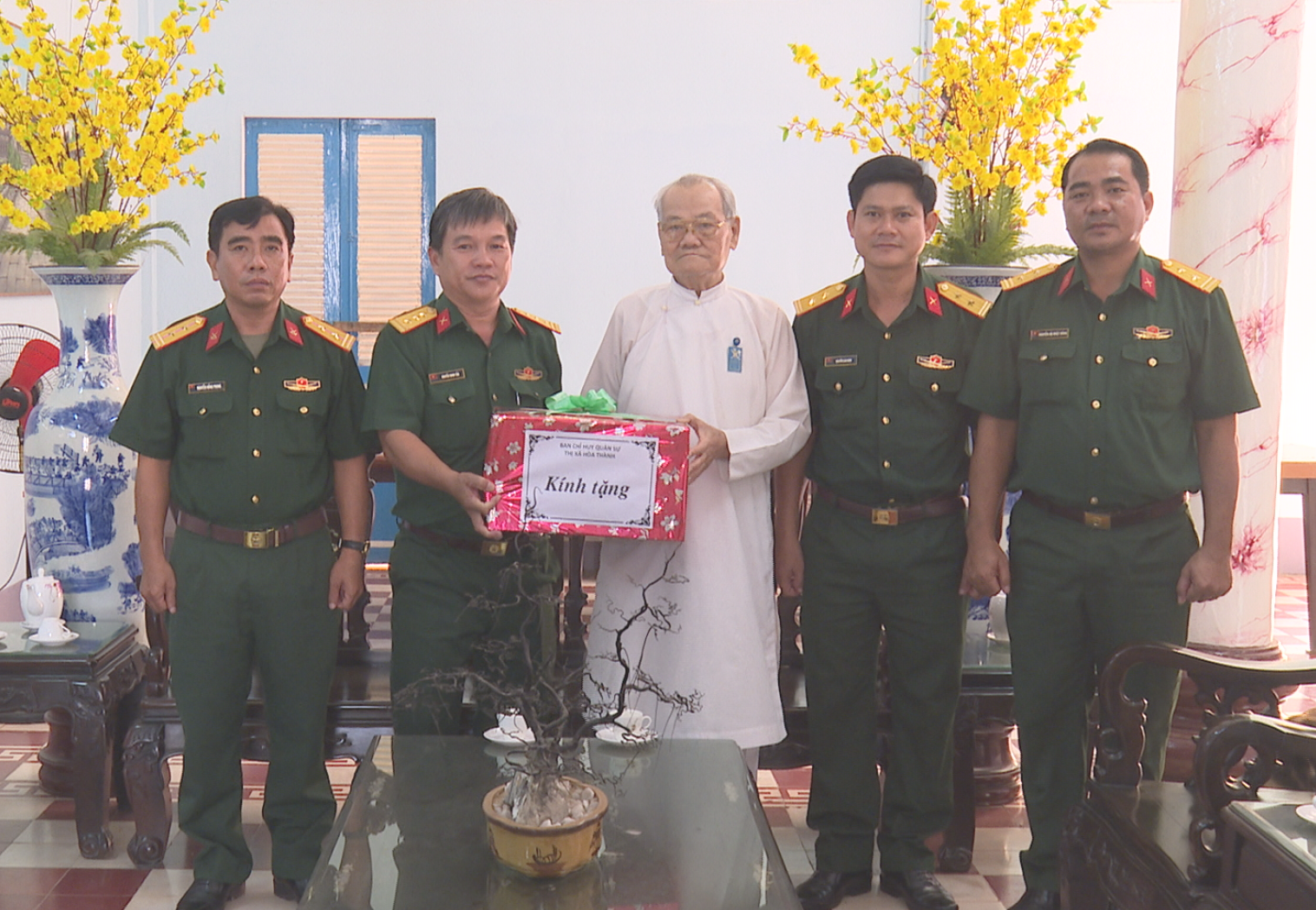 Đoàn công tác Ban CHQS thị xã Hòa Thành thăm, tặng quà Hội thánh Cao Đài Tòa Thánh Tây Ninh.