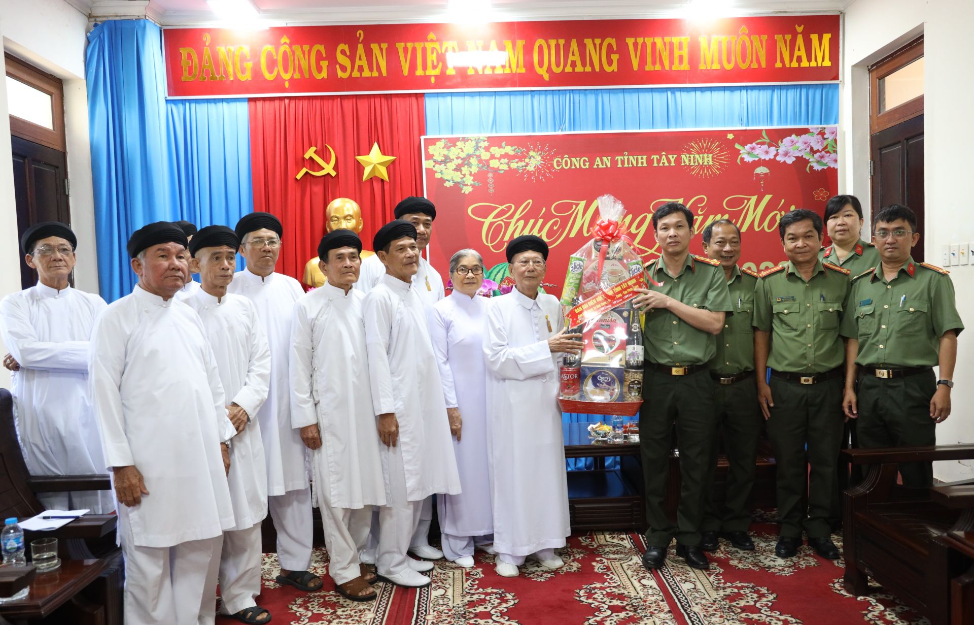 Ban Đại diện Hội thánh Cao Đài Toà thánh Tây Ninh tặng quà chúc mừng năm mới Công an Tây Ninh.