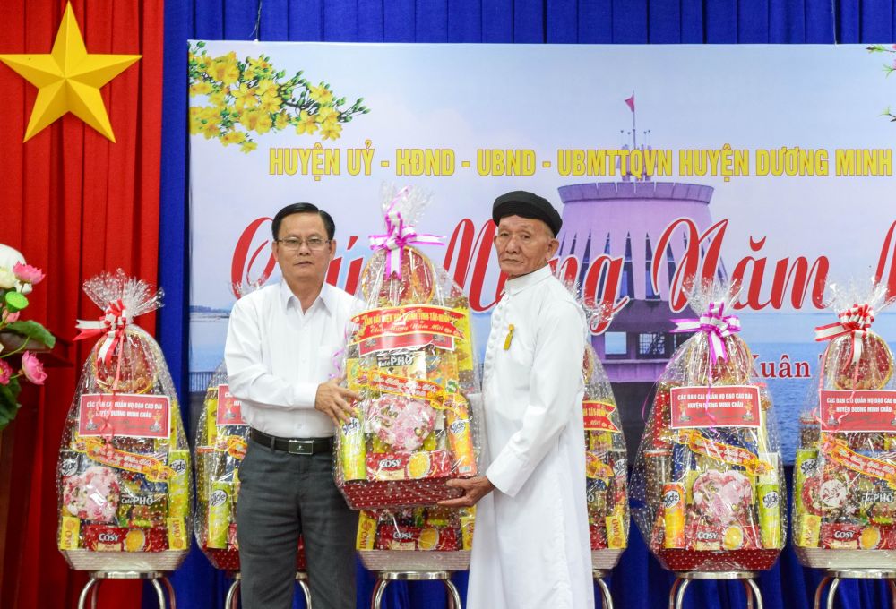 Ban đại diện Hội thánh Cao Đài Toà Thánh Tây Ninh và các Ban cai quản Họ đạo Cao đài trên địa bàn huyện Dương Minh Châu đã tặng nhiều phần quà tết cho lãnh đạo huyện và các phòng, ban trong huyện.