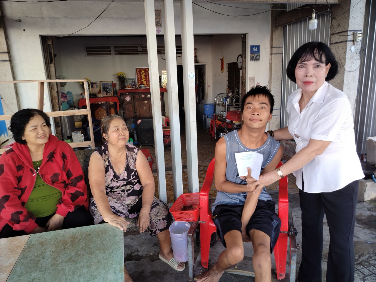 Chiều 6.10, bà Nguyễn Thị Điệp- Phó Chủ tịch Hội Chữ thập đỏ phường Hiệp Tân cùng Chi hội Chữ thập đỏ khu phố và đại diện Báo Tây Ninh đến nhà trao tiền của bạn đọc hỗ trợ cho gia đình em Thân Hoài Phương và ông Nguyễn Thanh Xuân, mỗi người 1.500.000 đồng.
