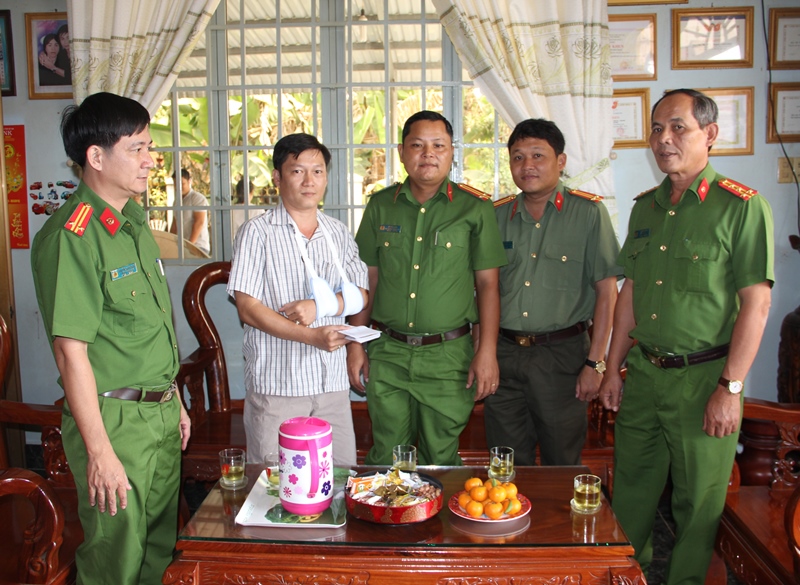Vừa qua, đại tá Lý Hồng Sinh- Phó Giám đốc Công an Tây Ninh cùng lãnh đạo Phòng Cảnh sát hình sự đã đến nhà thăm thiếu tá Võ Tấn Dũng- Đội trưởng Đội phòng ngừa đấu tranh phòng chống tệ nạn xã hội về mua bán người thuộc Phòng Cảnh sát hình sự, bị thương trong lúc truy bắt tội phạm.