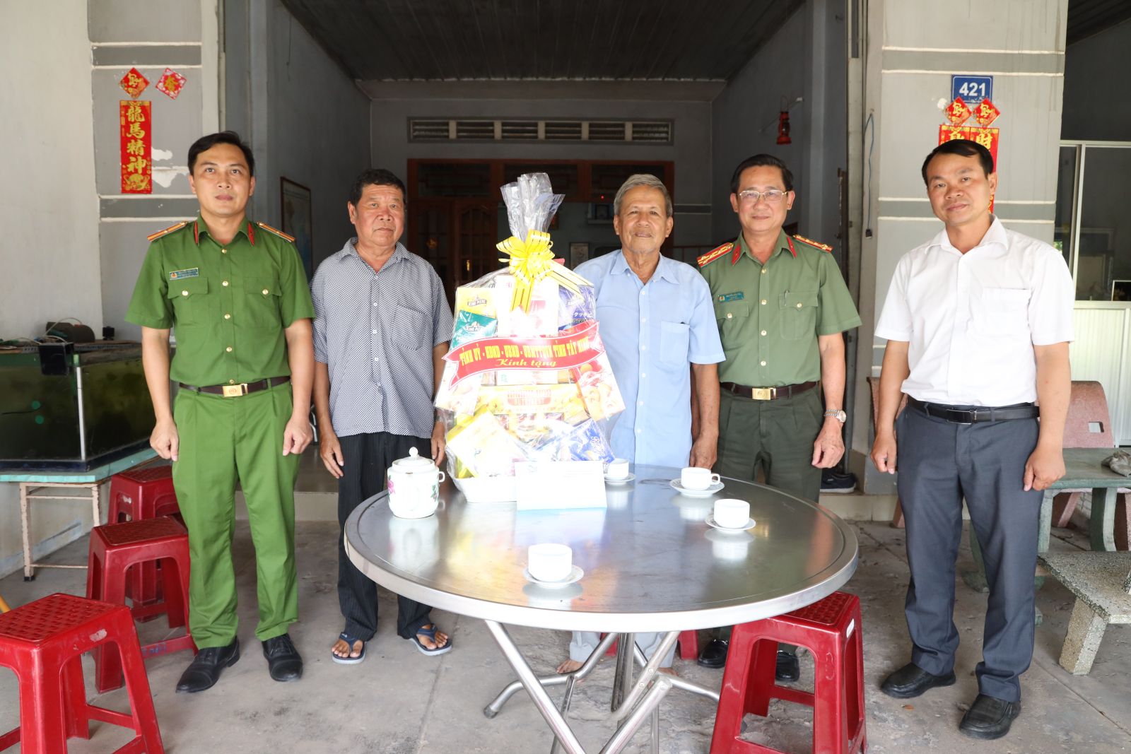 Tại những nơi đến thăm, Đại tá Nguyễn Văn Trãi- Giám đốc Công an tỉnh ân cần thăm hỏi sức khoẻ, bày tỏ lòng biết ơn, tri ân đối với những cống hiến, hy sinh to lớn của thế hệ đi trước, những người đã góp một phần xương máu của mình cho sự nghiệp đấu tranh, giải phóng miền Nam, thống nhất đất nước, góp phần mang lại độc lập, tự do cho dân tộc.