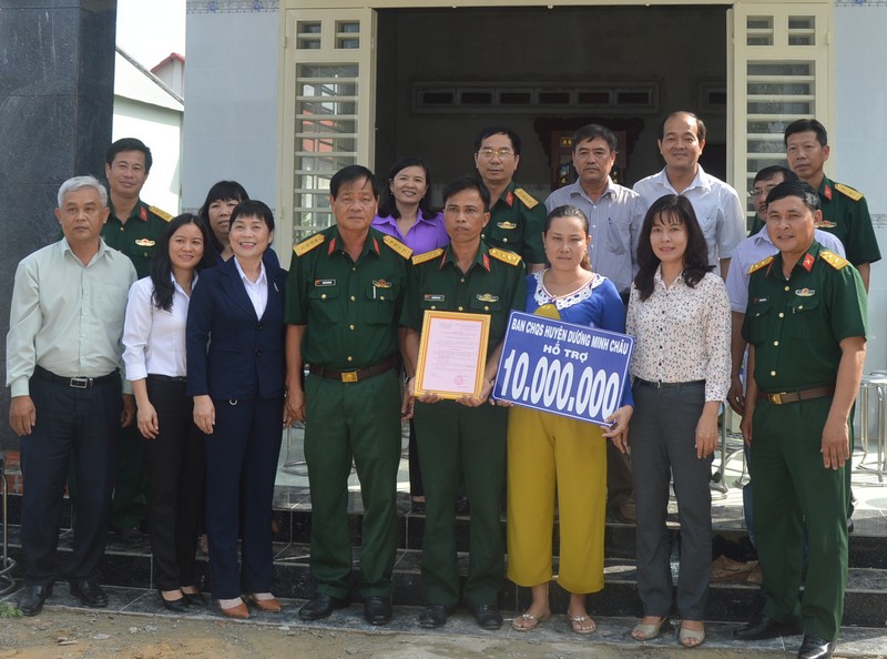 Đợt này, các gia đình được tặng nhà gồm thiếu tá Nguyễn Việt Phương- trợ lý tác huấn, Phòng tham mưu Bộ CHQS tỉnh, ngụ tại khu phố 2, phường 1, TP. Tây Ninh; đại úy Nguyễn Văn Tài- trợ lý dân quân thuộc Ban CHQS huyện Dương Minh Châu, hiện cư ngụ tại xã Bàu Năng, huyện Dương Minh Châu.
