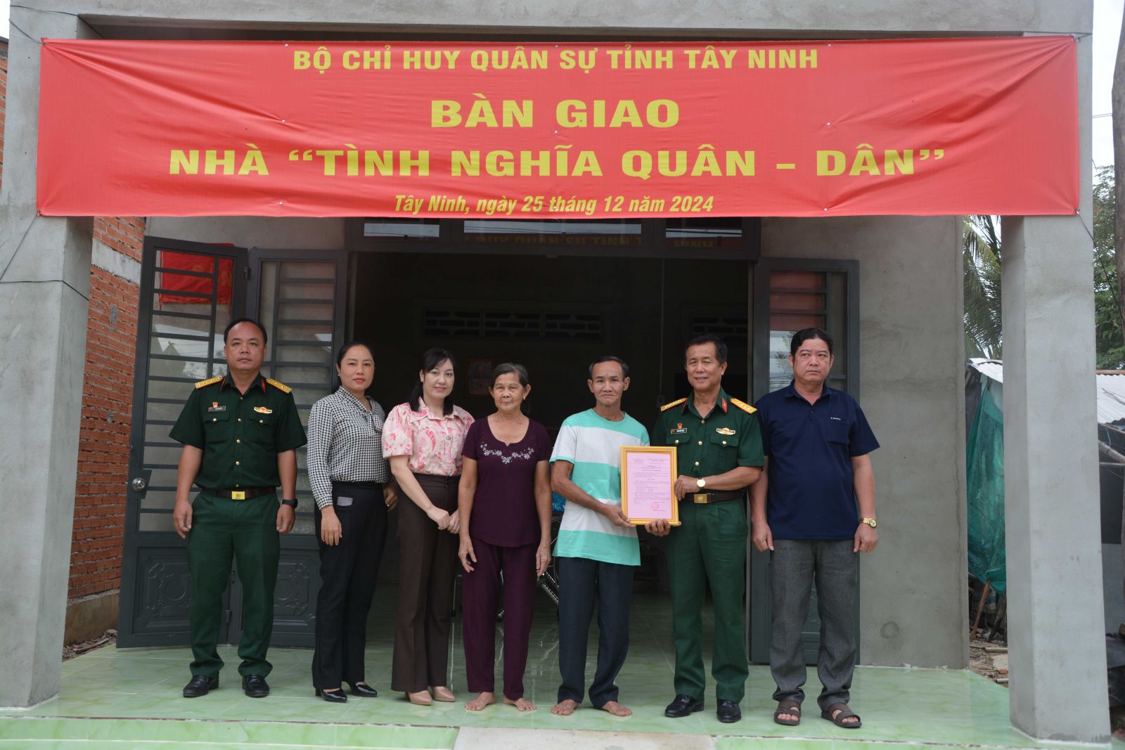 Sáng 25.12, Bộ CHQS tỉnh phối hợp cấp uỷ, chính quyền địa phương tổ chức lễ khánh thành và bàn giao nhà tình nghĩa quân – dân tặng gia đình ông Nguyễn Văn Em, ngụ ấp Hiệp Thạnh, xã Hoà Thạnh, huyện Châu Thành, có hoàn cảnh khó khăn về nhà ở.
