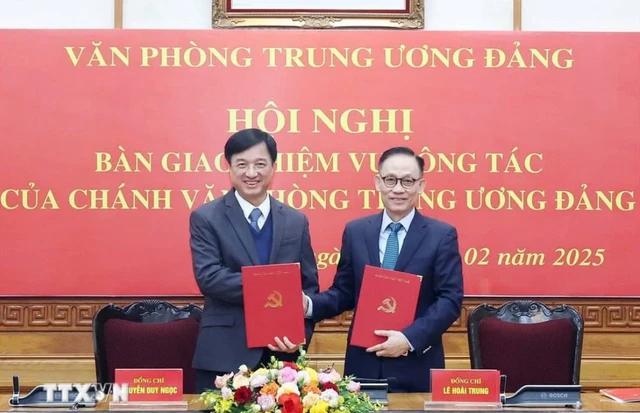 Tại Hội nghị, Ủy viên Bộ Chính trị, Bí thư Trung ương, Chủ nhiệm Ủy ban Kiểm tra Trung ương Nguyễn Duy Ngọc đã chính thức bàn giao các nhiệm vụ của Chánh Văn phòng Trung ương Đảng cho ông Lê Hoài Trung, Bí thư Trung ương Đảng, Chánh Văn phòng Trung ương Đảng.
