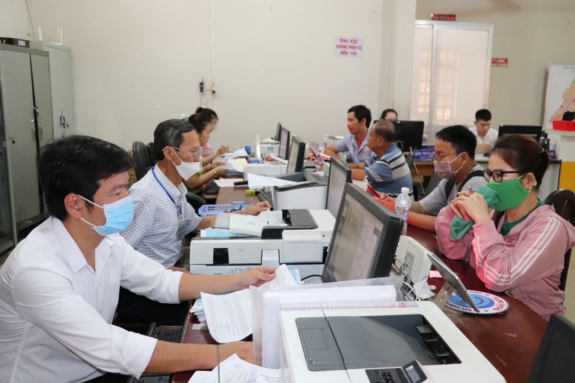 Người dân đến làm thủ tục về đất đai tại bộ phận Tiếp nhận và trả kết quả UBND huyện Dương Minh Châu.