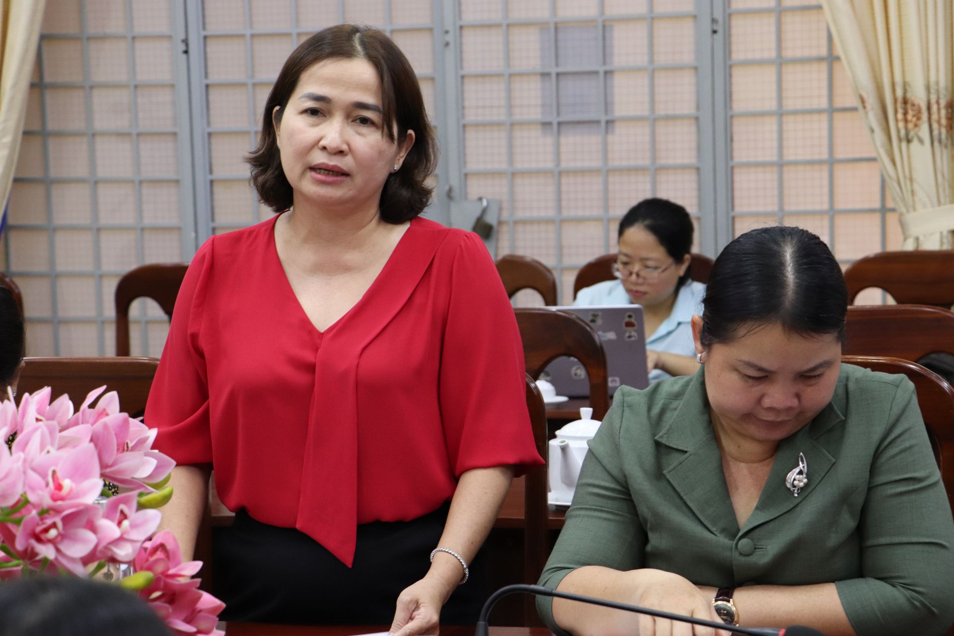 Bà Huỳnh Vương Hiếu- Phó trưởng Ban Kinh tế - Ngân sách HĐND tỉnh phát biểu tại buổi làm việc.