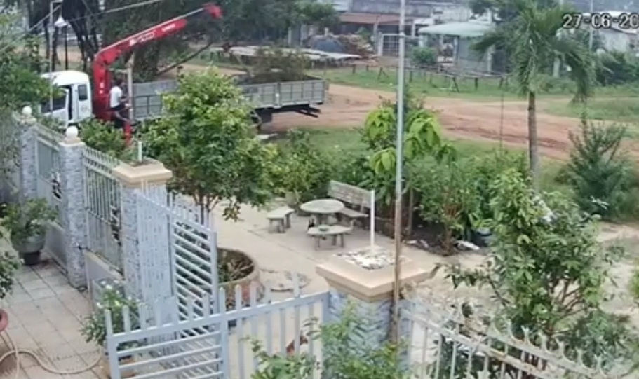 Xe cẩu cây kiểng nhà ông N.D.H (trích từ camera).
