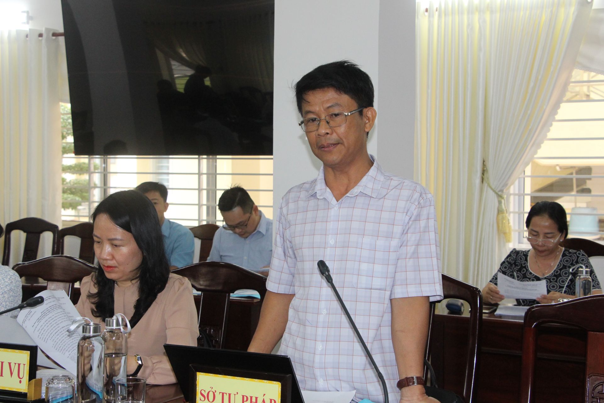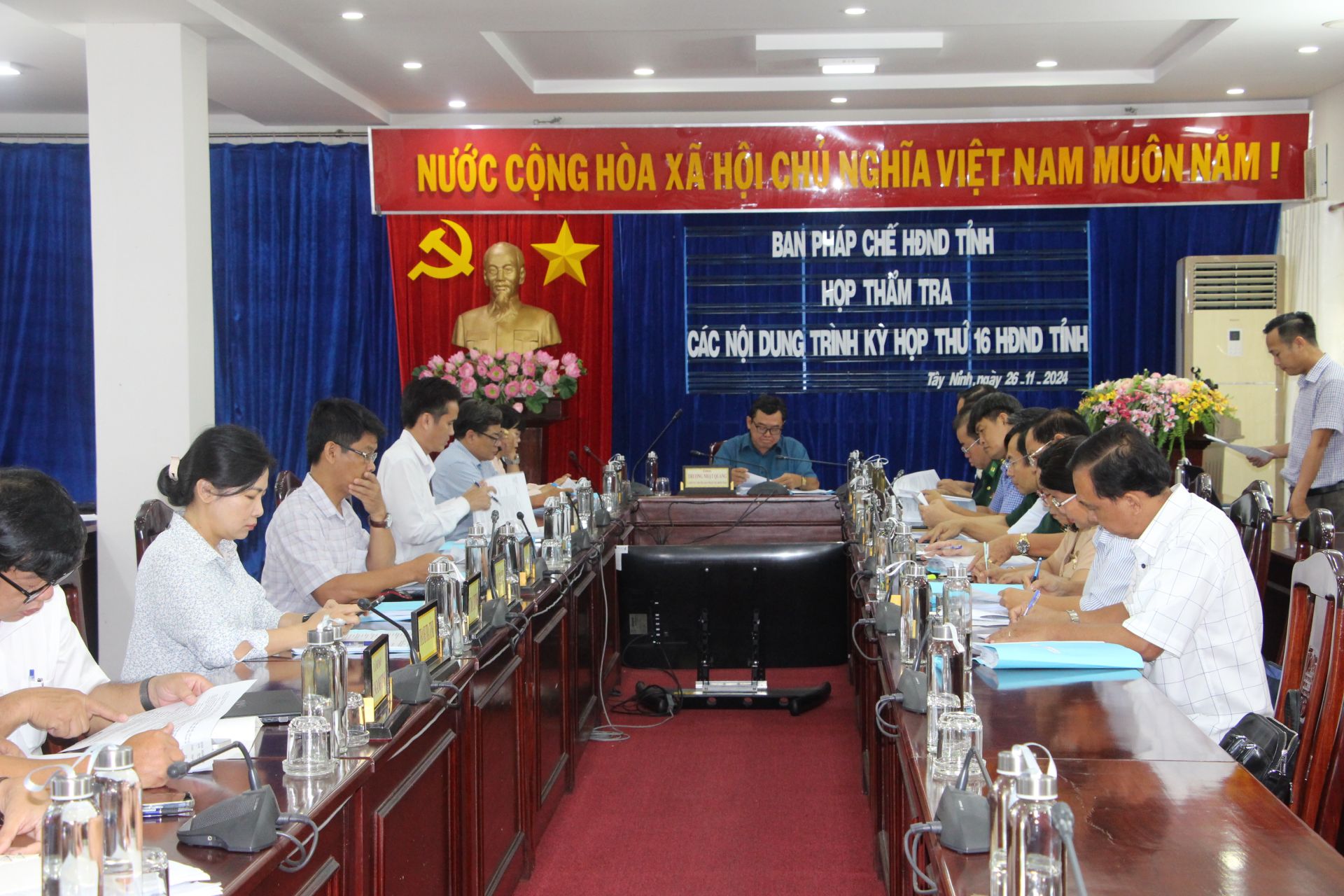 Ngày 26.11, Ban Pháp chế HĐND tỉnh họp thẩm tra các nội dung trình kỳ họp thứ 16 HĐND tỉnh. Ông Trương Nhật Quang - Trưởng Ban Dân vận Tỉnh uỷ, Trưởng Ban Pháp chế HĐND tỉnh chủ trì buổi làm việc.