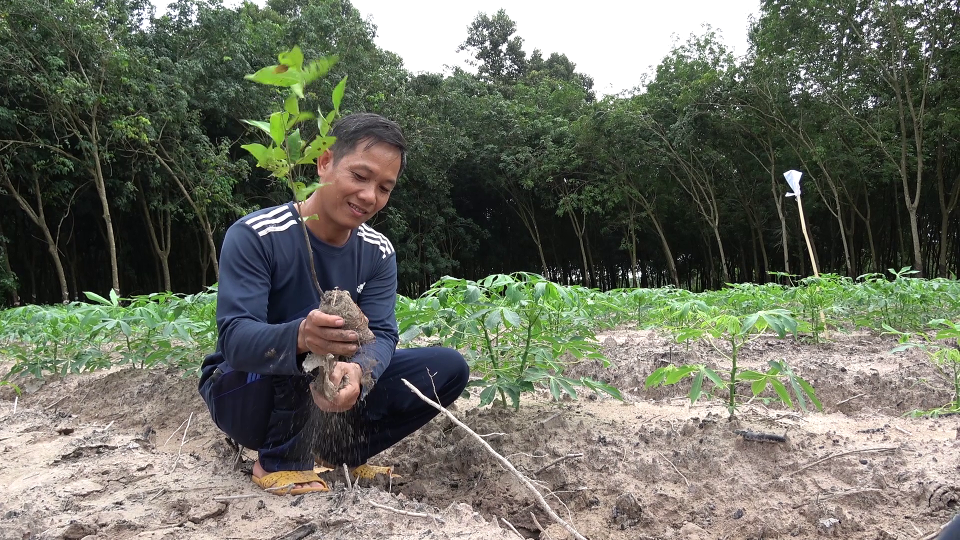 Một hộ dân có hợp đồng nhận khoán đang trồng rừng tại địa bàn xã Tân Thành, huyện Tân Châu.