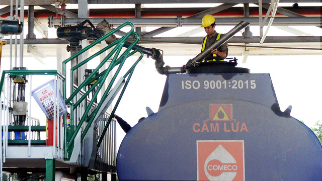 Xăng E5 bơm vào xe bồn để đưa đến các đại lý bán lẻ trên địa bàn TP.HCM - Ảnh: HỮU KHOA