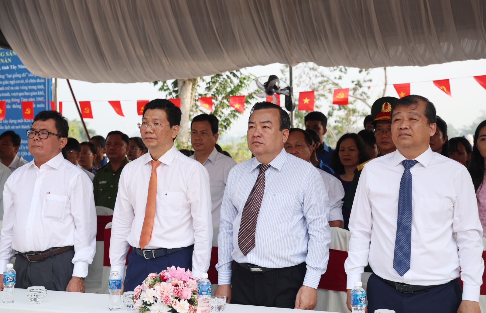 Tại Di tích “Địa điểm thành lập cơ sở Đảng Cộng sản đầu tiên của tỉnh Tây Ninh tại Giồng Nần” tọa lạc tại ấp Long Đại, xã Long Vĩnh, huyện Châu Thành, các đại biểu đã dâng hương và dành phút mặc niệm để tưởng nhớ, tri ân các anh hùng liệt sĩ đã anh dũng hy sinh vì sự nghiệp giải phóng dân tộc.