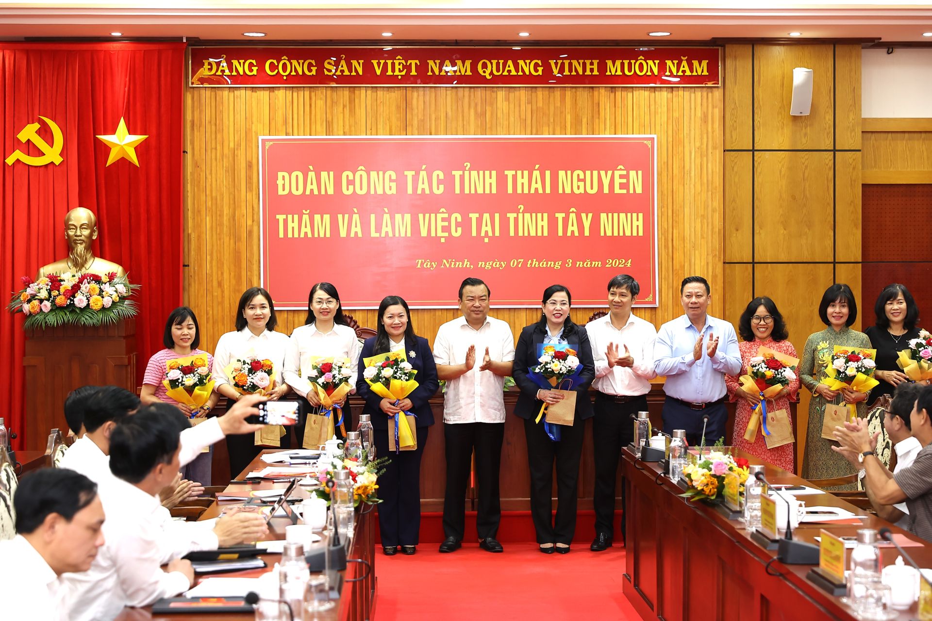 Thường trực Tỉnh uỷ Tây Ninh tặng quà chúc mừng các nữ lãnh đạo tỉnh Thái Nguyên và Tây Ninh nhân ngày Quốc tế phụ nữ 8.3