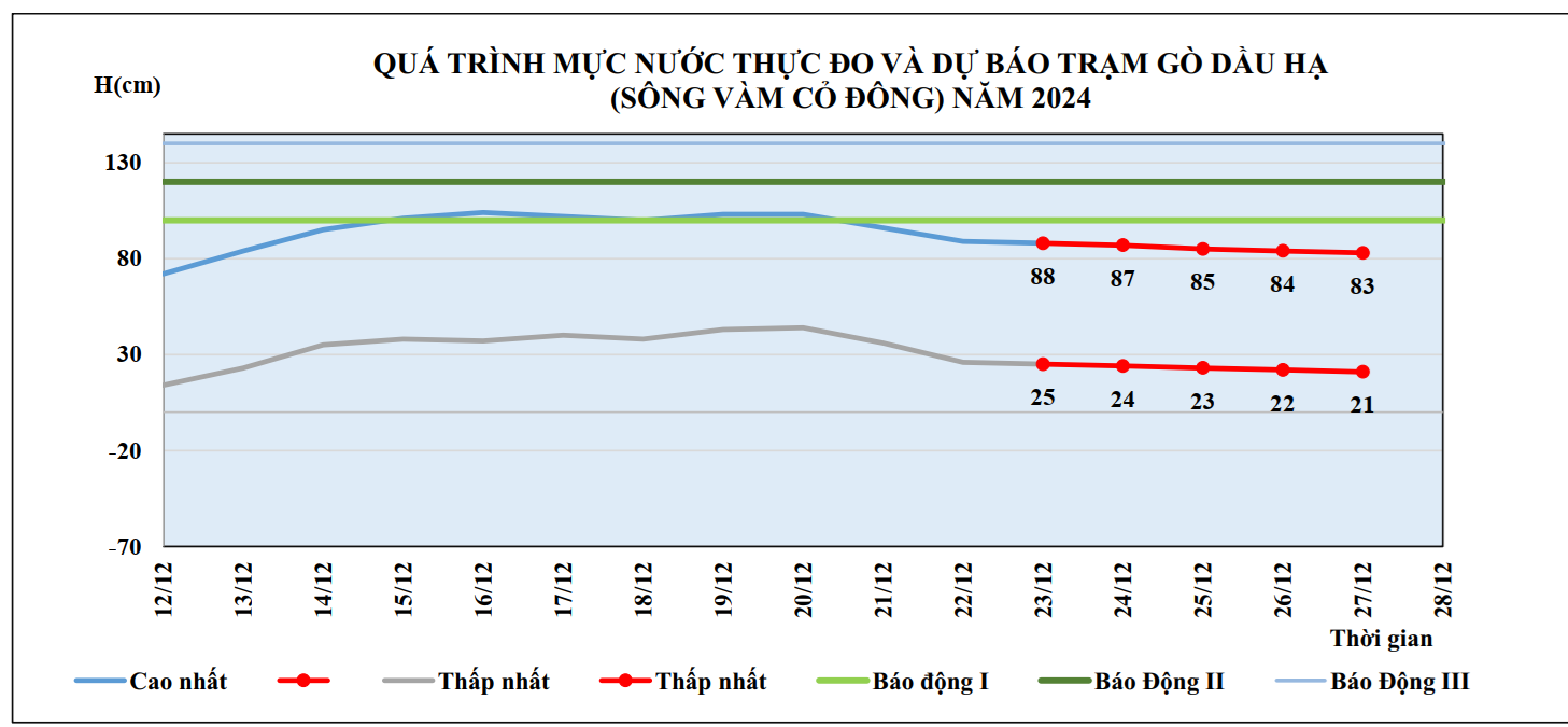 Theo dự báo của Đài Khí tượng thủy văn tỉnh Tây Ninh, lưu vực sông Vàm Cỏ Đông tại trạm Thủy văn Gò Dầu Hạ: mực nước ở thượng lưu có xu thế lên, ở hạ lưu dao động theo triều cường và chân triều.