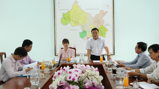 Đại diện lãnh đạo huyện Gò Dầu báo cáo với đoàn công tác tỉnh.