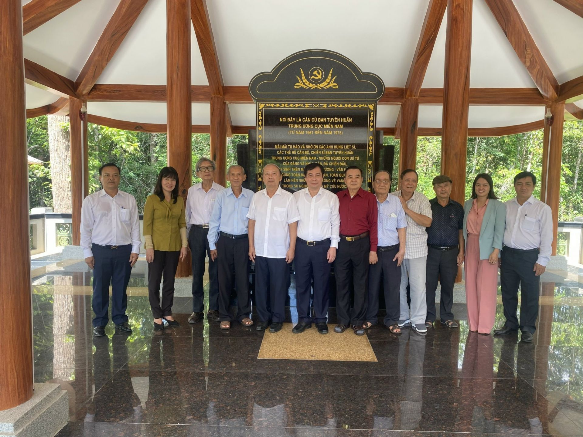 Các đại biểu tại bia tưởng niệm Ban Tuyên huấn Trung ương Cục miền Nam.