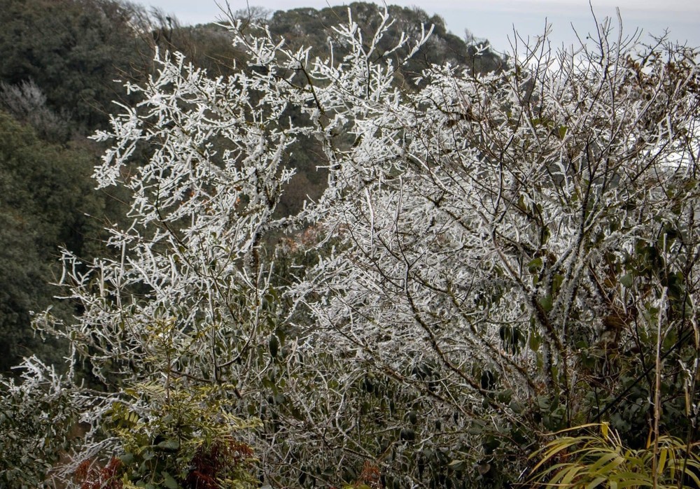 Tại đỉnh Phia Oắc của Cao Bằng, sáng 11/1 đã ghi nhận hiện tượng băng giá, sương muối khi nhiệt độ giảm xuống quanh 0 độ C.