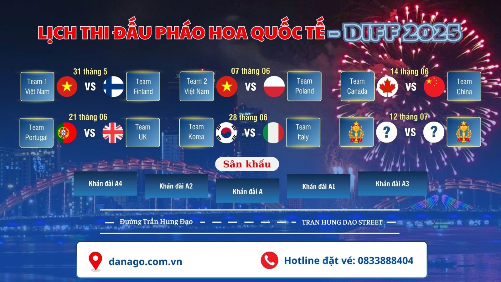 - Cập nhật thông tin sự kiện: Lịch trình thi đấu của các đội, thời gian diễn ra các đêm pháo hoa có thể thay đổi. Theo dõi thông tin từ DANAGO để không bỏ lỡ bất kỳ đêm trình diễn nào.