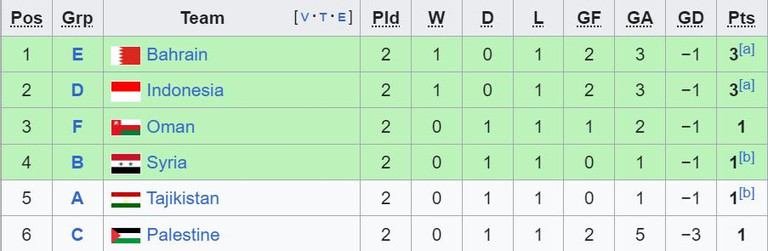 Bảng xếp hạng các đội đứng thứ 3 Asian Cup 2023 hiện tại.