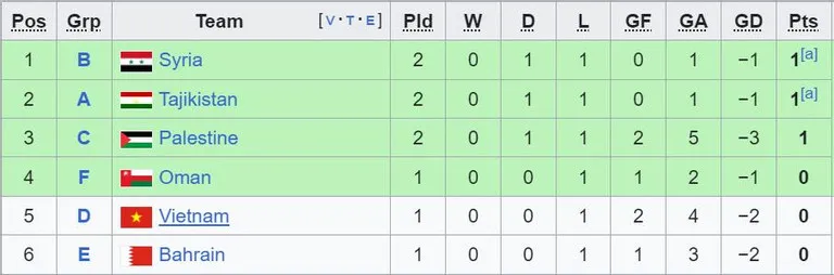 Bảng xếp hạng các đội đứng thứ 3 Asian Cup 2023 hiện tại.
