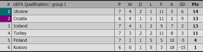 Bảng I: Croatia, Phần Lan, Iceland, Kosovo, Thổ Nhĩ Kỳ, Ukraine