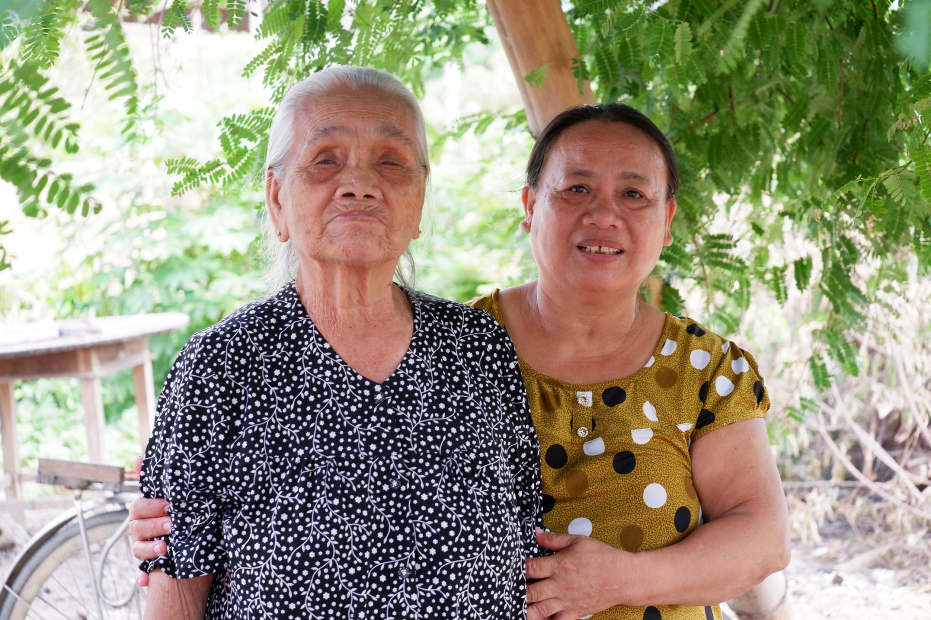 Nghệ nhân Lê Thị Nù và con gái trong gia đình 2 thế hệ cùng làm bánh tráng (ảnh: Phí Thành Phát).