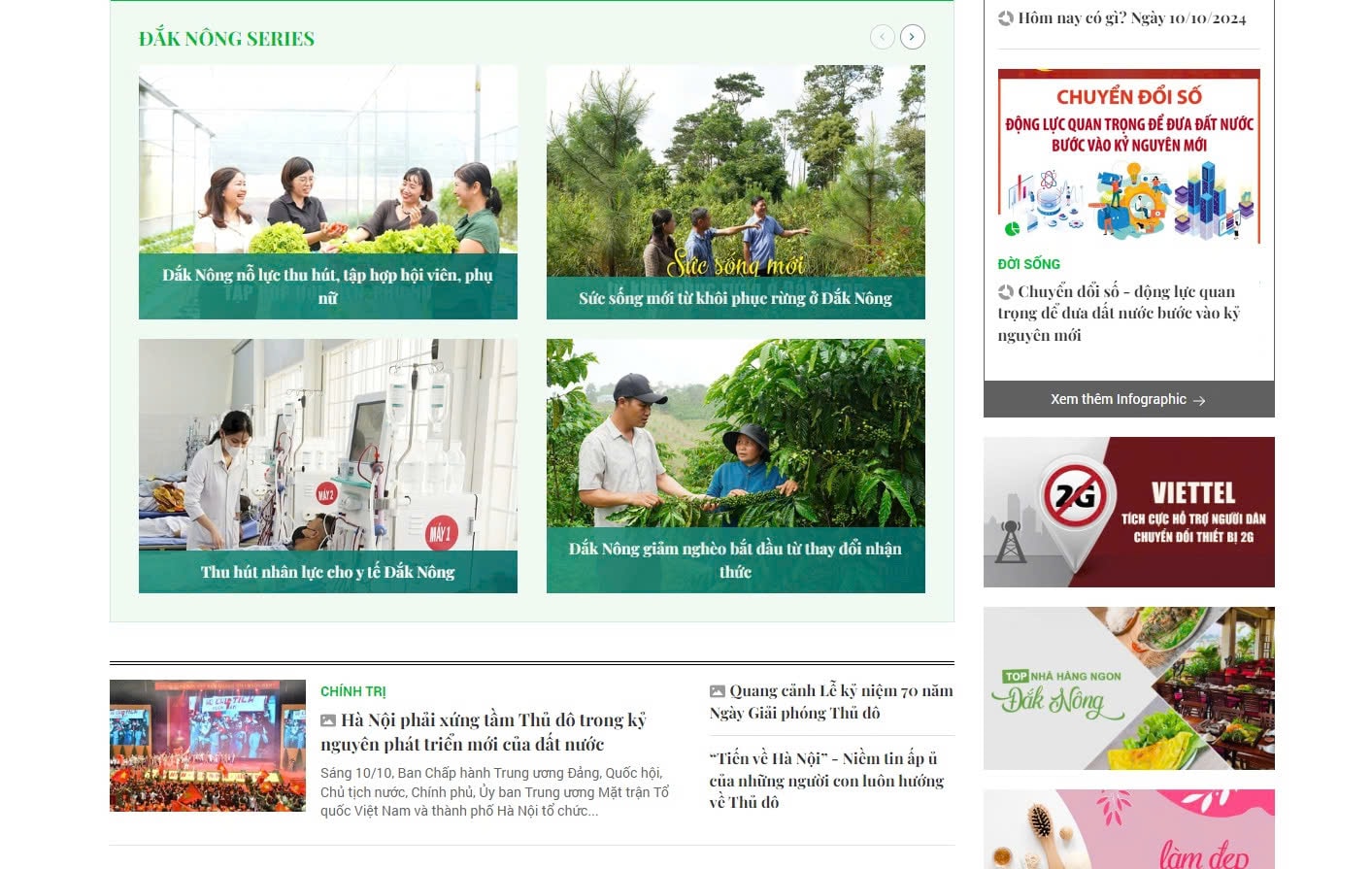 Hưởng ứng Ngày Chuyển đổi số Quốc gia, ngày 10/10/2024, Báo Đắk Nông đã đưa vào vận hành giao diện báo điện tử mới. Đây là phiên bản nâng cấp từ giao diện ra mắt ngày 23/3/2023.