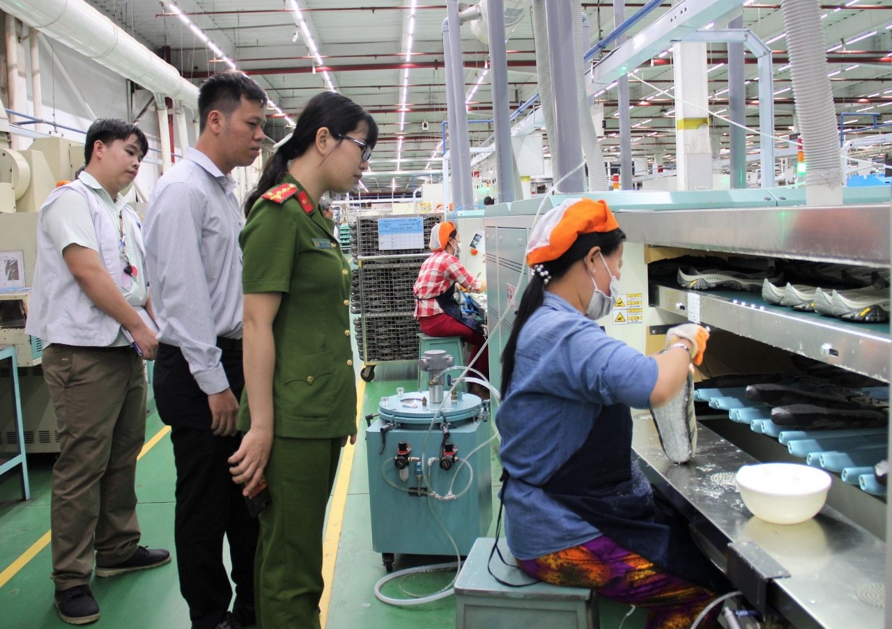 Kiểm tra công đoạn quét keo giày tại một doanh nghiệp.