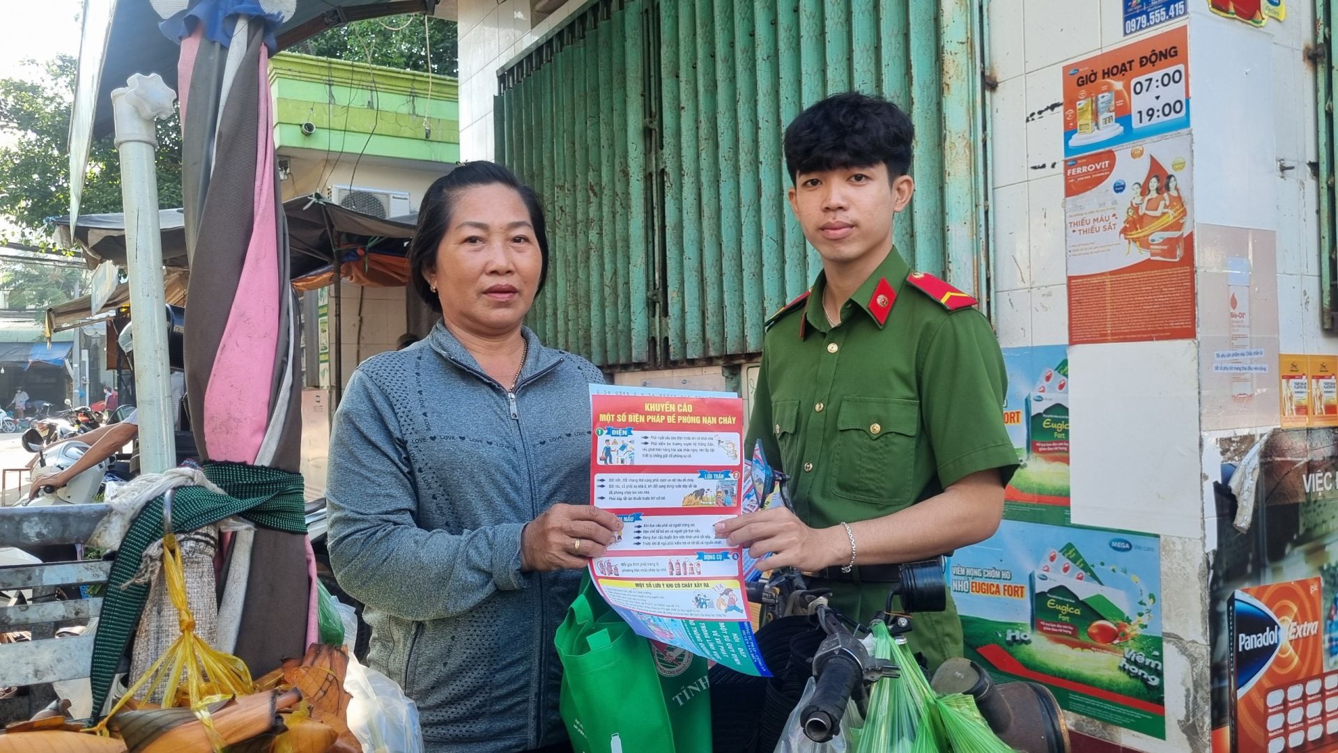 Phát tờ rơi tuyên truyền kỹ năng phòng cháy chữa cháy.