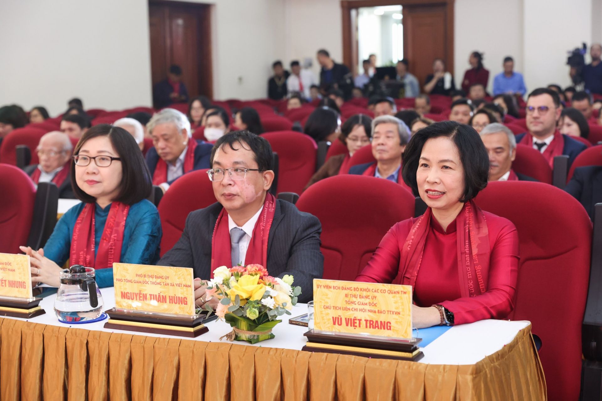 Lãnh đạo Thông tấn xã Việt Nam tham dự buổi lễ. (Ảnh: PV/Vietnam+)