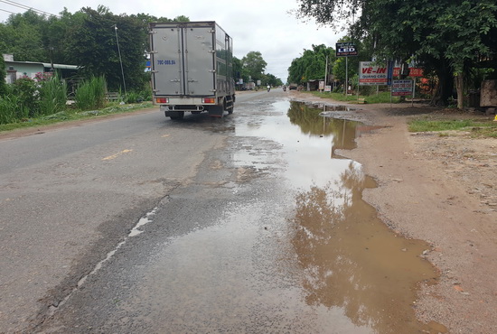 Nước đọng vũng trên QL22B.