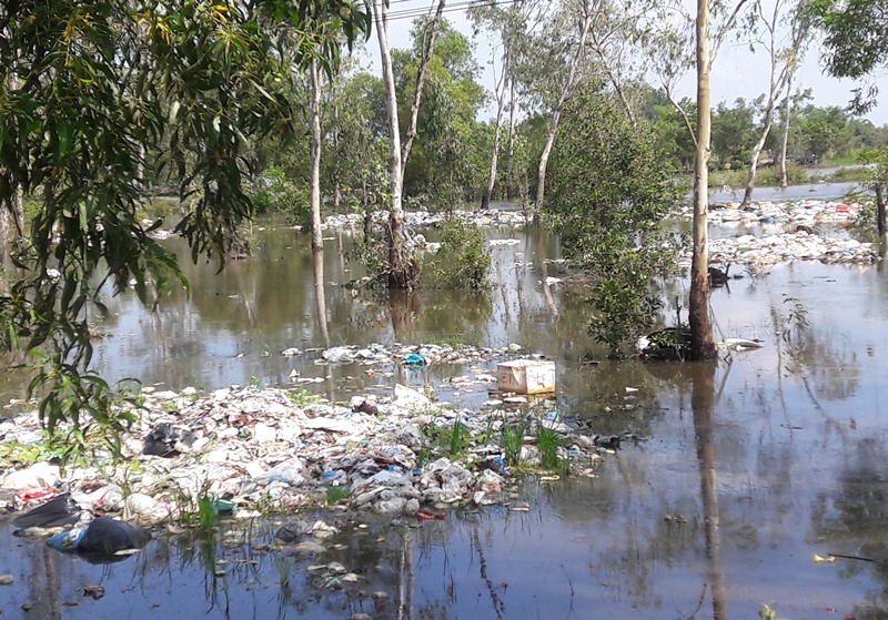 Bãi rác Bình Thạnh ô nhiễm nghiêm trọng trong mùa nước ngập năm 2017.